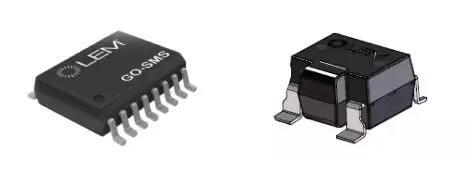 當印刷電路板(Print Circuit Board)上用于電流測量的布板空間比較小時,理想情況是采用芯片式電流測量方案。將初級導體進行集成,直接表面貼裝(Surface Mounted Device)到印刷電路板上,從而降低制造成本,同時也避免混淆各種焊接工藝。LEM 最新開發(fā)的GO-SMS(下圖左)/HMSR-SMS(下圖右) 系列電流傳感器均為SMD封裝的芯片式電流傳感器。