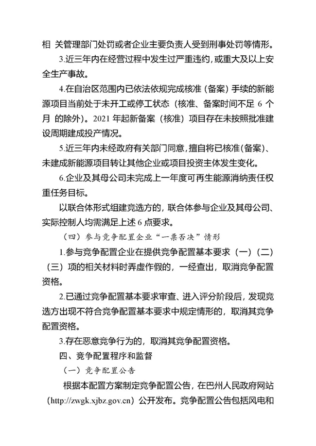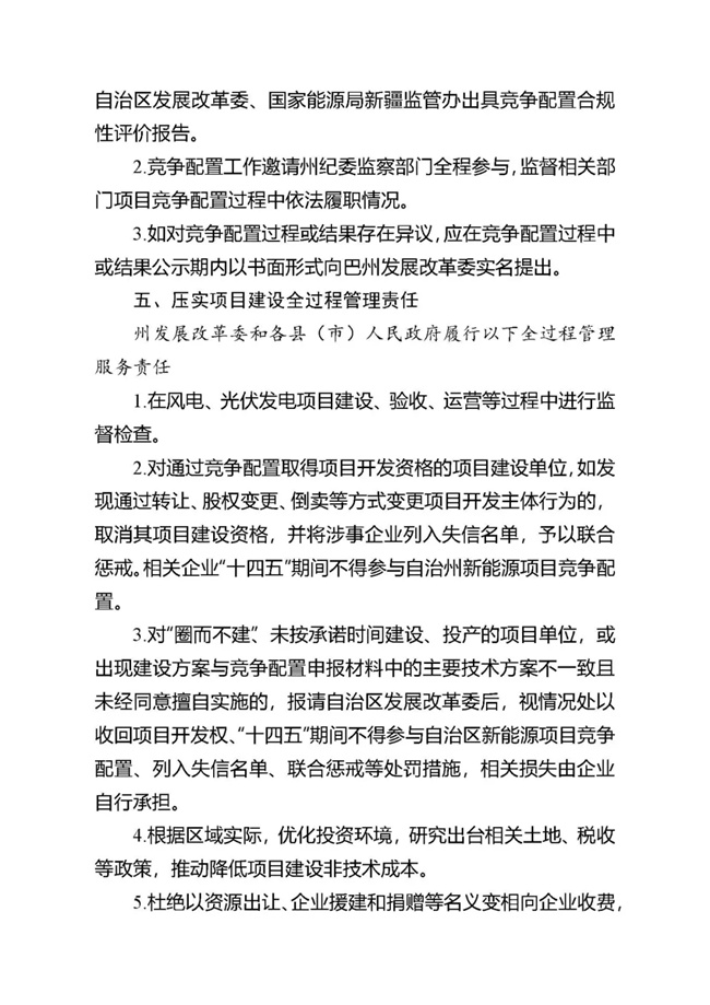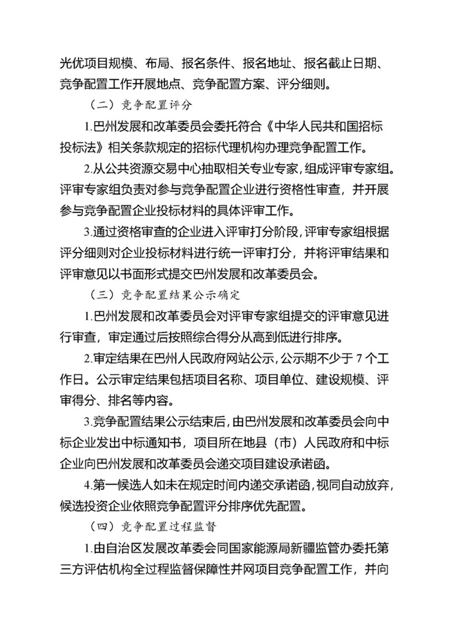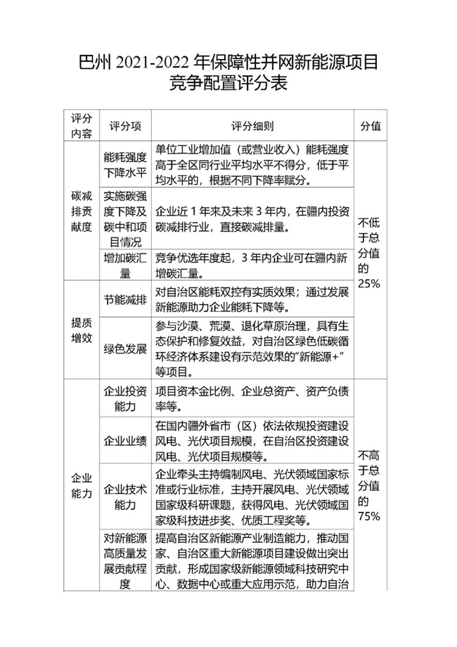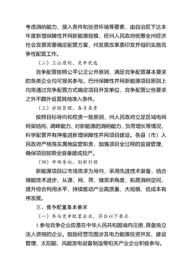 為貫徹落實(shí)碳達(dá)峰、碳中和任務(wù),持續(xù)推動(dòng)巴州風(fēng)電、光伏發(fā)電高質(zhì)量發(fā)展。按照《國(guó)家能源局關(guān)于2021年風(fēng)電、光伏發(fā)電開發(fā)建設(shè)有關(guān)事項(xiàng)的通知》(國(guó)能發(fā)新能〔2021〕25號(hào)) 《新疆維吾爾自治區(qū)火電和風(fēng)電、光伏等公共資源開發(fā)建設(shè)項(xiàng)目公開招標(biāo)選定業(yè)主暫行辦法》(自治區(qū)人民政府第201號(hào)令)《自治區(qū)發(fā)展改革委國(guó)家能源局新疆監(jiān)管辦關(guān)于2021年風(fēng)電、光伏發(fā)電年度開發(fā)建設(shè)方案有關(guān)事項(xiàng)的通知》(新發(fā)改能源〔2021〕419號(hào))等法律法規(guī)文件要求,現(xiàn)將巴州2021-2022年保障性并網(wǎng)新能源項(xiàng)目競(jìng)爭(zhēng)性配置公開優(yōu)選業(yè)主工作公告如下: