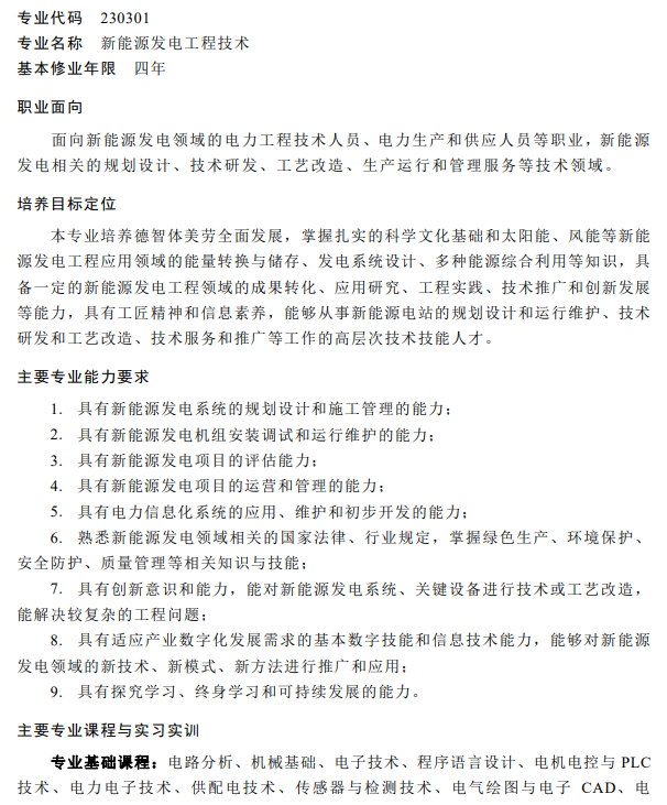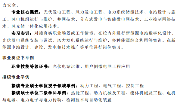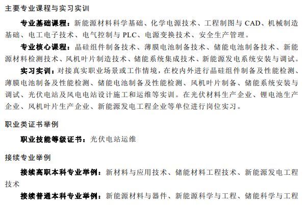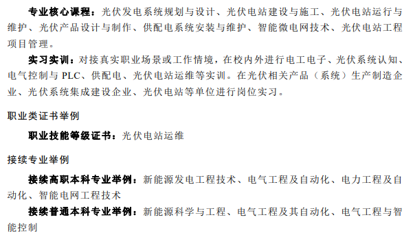 在中等職業(yè)教育、高等職業(yè)教育??茖I(yè)、高等職業(yè)教育本科專業(yè)的簡介中均包含光伏相關(guān)專業(yè),都同屬于能源動(dòng)力與材料大類新能源發(fā)電工程類。