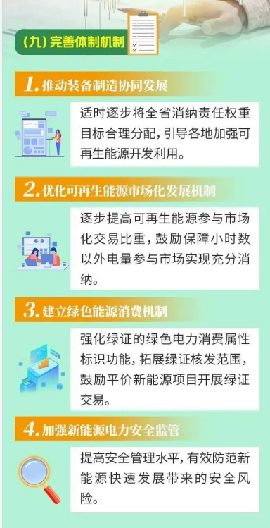 ——可再生能源電力消納目標(biāo)。2025年,全省可再生能源電力總量消納責(zé)任權(quán)重達到32.2%以上,可再生能源電力非水電消納責(zé)任權(quán)重達到25.9%以上,可再生能源利用率保持在合理水平。