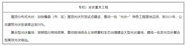 加快整縣(市、區(qū))屋頂光伏開發(fā)試點建設(shè),推動一批“光伏+”特色工程落地見效,到2025年,公共建筑光伏安裝率達到20%。