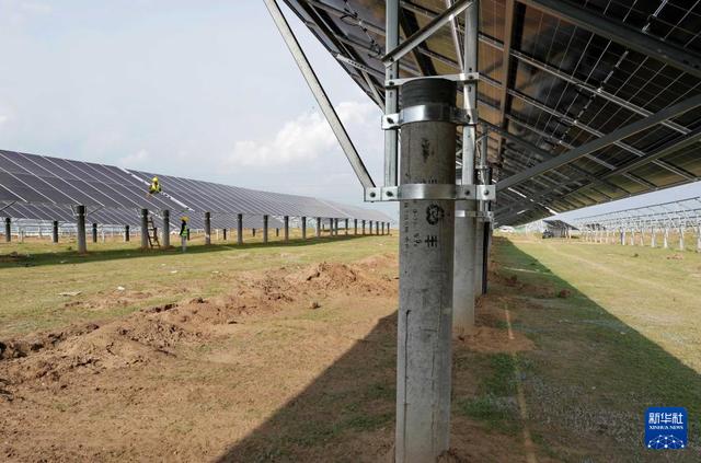 7月21日,工人在承德市豐寧滿(mǎn)族自治縣魚(yú)兒山鎮(zhèn)附近的一處光伏發(fā)電場(chǎng)建設(shè)工地工作。