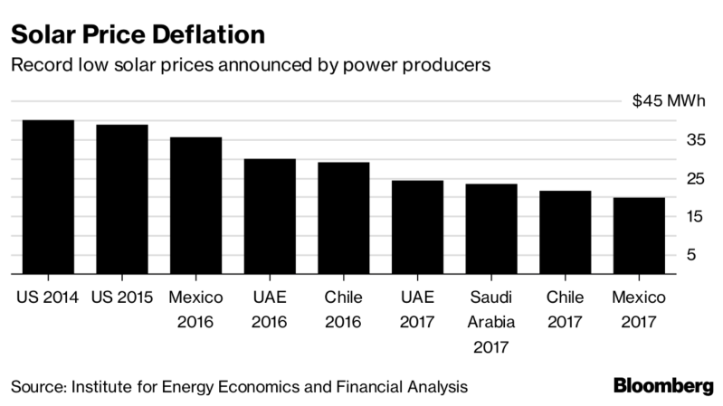 根據(jù)彭博新能源財經(jīng)數(shù)據(jù),IEEFA表示,2017年全球新增太陽能裝機98吉瓦,中國占53吉瓦。同時,發(fā)電資產(chǎn)使用期間的單位電力成本同比下降15%,至86美元/兆瓦時。