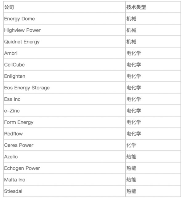 組織中的長(zhǎng)時(shí)儲(chǔ)能公司包括機(jī)械、電化學(xué)、化學(xué)和熱技術(shù)公司,以及儲(chǔ)能公司。其中影響力巨大的投資集團(tuán)Breakthrough Energy Ventures脫穎而出,由英國(guó)石油(BP)和比爾•蓋茨(Bill Gates)合作運(yùn)營(yíng)。成員還包括主要設(shè)備制造商,如Alfa Laval、貝克休斯和西門子能源、可再生能源開發(fā)商Greenko、工業(yè)終端用戶NEOM、里約熱內(nèi)盧Tinto和公用事業(yè)公司紐約電力局。