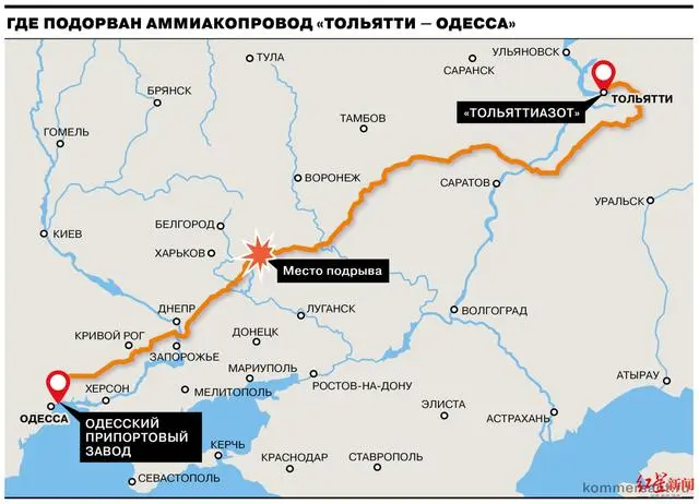 據(jù)央視新聞,俄羅斯國(guó)防部發(fā)言人科納申科夫7日稱(chēng),烏克蘭破壞分子5日晚炸毀了位于哈爾科夫州的陶里亞蒂-敖德薩液氨輸送管道。