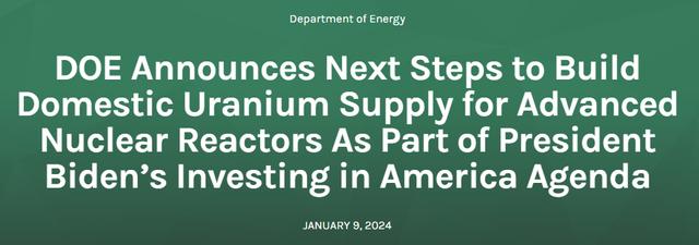 日內(nèi)全球鈾礦商的股票大漲,因美國政府周二(1月9日)表示正在征集投標(biāo)以促進(jìn)其國內(nèi)的核燃料生產(chǎn)。