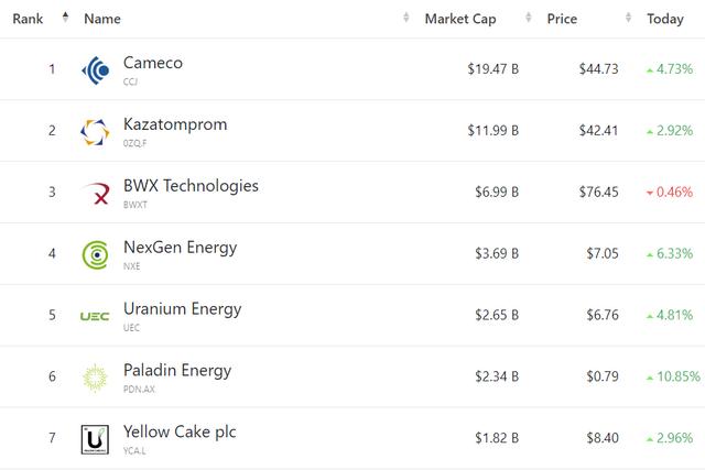 受益于這些消息,在美股上市的NexGen Energy收超6%,澳大利亞的Paladin Energy和Deep Yellow也分別上漲10%和6%。在倫敦上市的Yellow Cake走高至創(chuàng)紀(jì)錄的高位,延續(xù)了去年65%的漲幅。