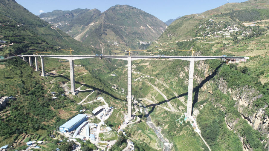 國慶期間,具有“世界第一高鋼管混凝土格構(gòu)空心橋墩”的金陽河特大橋順利合龍,該橋計劃于本年度12月建成通車。