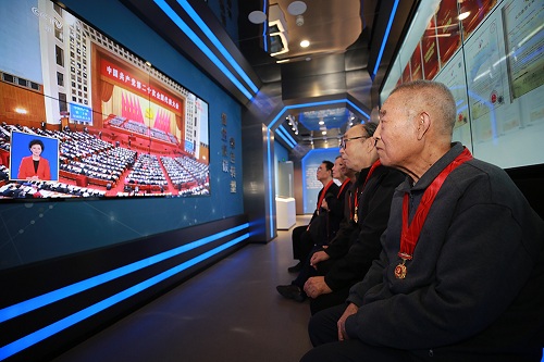 國網山東濱州供電公司組織“光榮在黨50年”老黨員在新時代文明實踐基地收看中國共產黨第二十次全國代表大會開幕會。