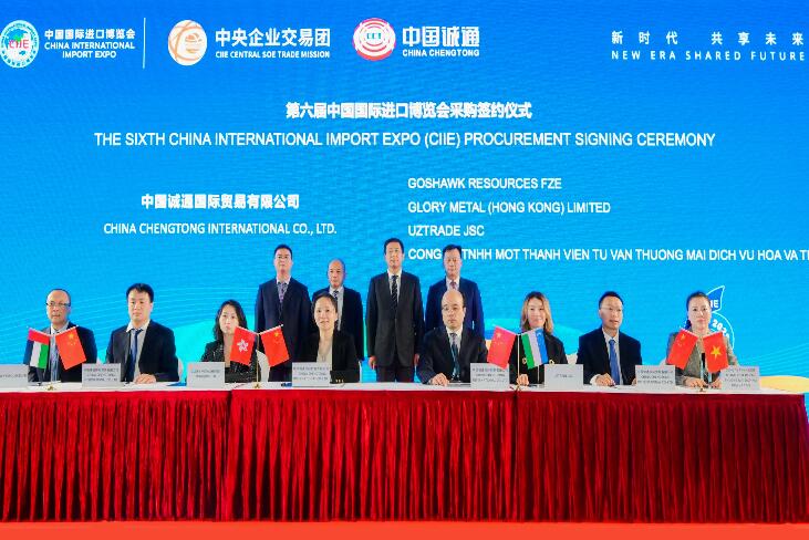 11月7日,中國(guó)誠(chéng)通4家所出資企業(yè)分別與來(lái)自阿聯(lián)酋、巴西等14個(gè)國(guó)家和地區(qū)的28家客商簽署采購(gòu)協(xié)議。簽約金額合計(jì)達(dá)18.5億美元,較上屆進(jìn)博會(huì)增長(zhǎng)12%,較首屆增長(zhǎng)106%。采購(gòu)產(chǎn)品既有鉻礦、錳礦、煤炭、紙漿、甲醇、棉紗等重要資源型產(chǎn)品,也有如電極、電池裝配設(shè)備等高新技術(shù)產(chǎn)品首次參加簽約。