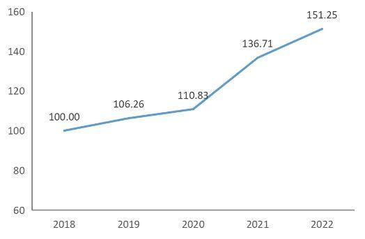 指數(shù)運行結(jié)果顯示,2022年,內(nèi)蒙古現(xiàn)代能源經(jīng)濟(jì)發(fā)展指數(shù)達(dá)151.25點,同比增長10.64%。