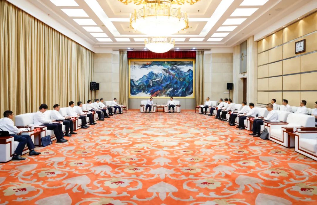 7月4日,中國電建黨委書記、董事長丁焰章在蘭州拜會甘肅省委書記、省人大常委會主任胡昌升,雙方就鞏固深化戰(zhàn)略合作、推動甘肅高質量發(fā)展進行會談交流。甘肅省委常委、省委秘書長張偉,副省長王鈞;公司黨委常委、副總經理王小軍參加會談。