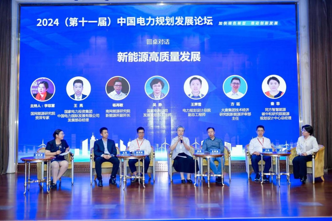 論壇同期舉辦了兩場(chǎng)圓桌對(duì)話。新能源高質(zhì)量發(fā)展圓桌對(duì)話由國(guó)網(wǎng)能源研究院資深專家李瓊慧主持,國(guó)網(wǎng)發(fā)展策劃部主任師吳靜,電力規(guī)劃設(shè)計(jì)總院副總工程師王霽雪,南網(wǎng)能源研究院新能源所副所長(zhǎng)楊再敏,大唐集團(tuán)技術(shù)經(jīng)濟(jì)研究院新能源評(píng)審部主任方廷,國(guó)家電力投資集團(tuán)中國(guó)電力國(guó)際發(fā)展有限公司發(fā)展部總經(jīng)理王亮,同方智慧能源碳中和研究院能源規(guī)劃設(shè)計(jì)中心總經(jīng)理秦菲,共同圍繞當(dāng)前新能源發(fā)展面臨的機(jī)遇和挑戰(zhàn),結(jié)合自己的業(yè)務(wù)實(shí)際,就如何實(shí)現(xiàn)高質(zhì)量發(fā)展進(jìn)行了互動(dòng)交流。