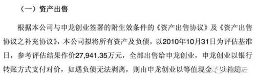 但是,我大A股的大股東們豈是凡夫俗子,都有起死回生的妙招,何況只是半死不活。只見(jiàn)控股股東申龍創(chuàng)業(yè)一掃三年萎靡,一手發(fā)動(dòng)賣賣賣技能保利潤(rùn),一手祭出重組大法,直接賣殼走人。