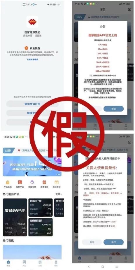 經(jīng)核實(shí),該APP并非國家能源集團(tuán)發(fā)布,其使用集團(tuán)名號(hào)和商標(biāo)的行為未經(jīng)任何授權(quán),其發(fā)布的一切活動(dòng)和產(chǎn)品均與集團(tuán)無關(guān)。集團(tuán)已就相關(guān)情況向有關(guān)部門報(bào)案,請(qǐng)社會(huì)公眾提高警惕,謹(jǐn)防上當(dāng)受騙。(記者 宋霞)