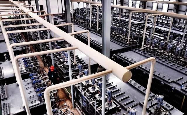 2023年5月,陜西渭南市,在一家新能源企業(yè)的濕法萃取車間,工人巡檢鎳鈷錳鋰萃取工段。該企業(yè)實現(xiàn)廢舊動力電池的梯次利用和再生利用。圖/視覺中國