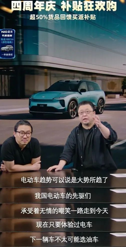 而老羅帶貨蔚來則“廣告”的屬性更為明顯,基本上就相當(dāng)于一場“直播間專屬廣告”。在老羅極具個(gè)人特色的介紹下,蔚來在羅永浩的直播間進(jìn)行了一次“科普”。不論效果如何,老羅還是制造了“只要體驗(yàn)過電車,下一輛車就不太可能是油車”這樣頗具傳播效果的金句。