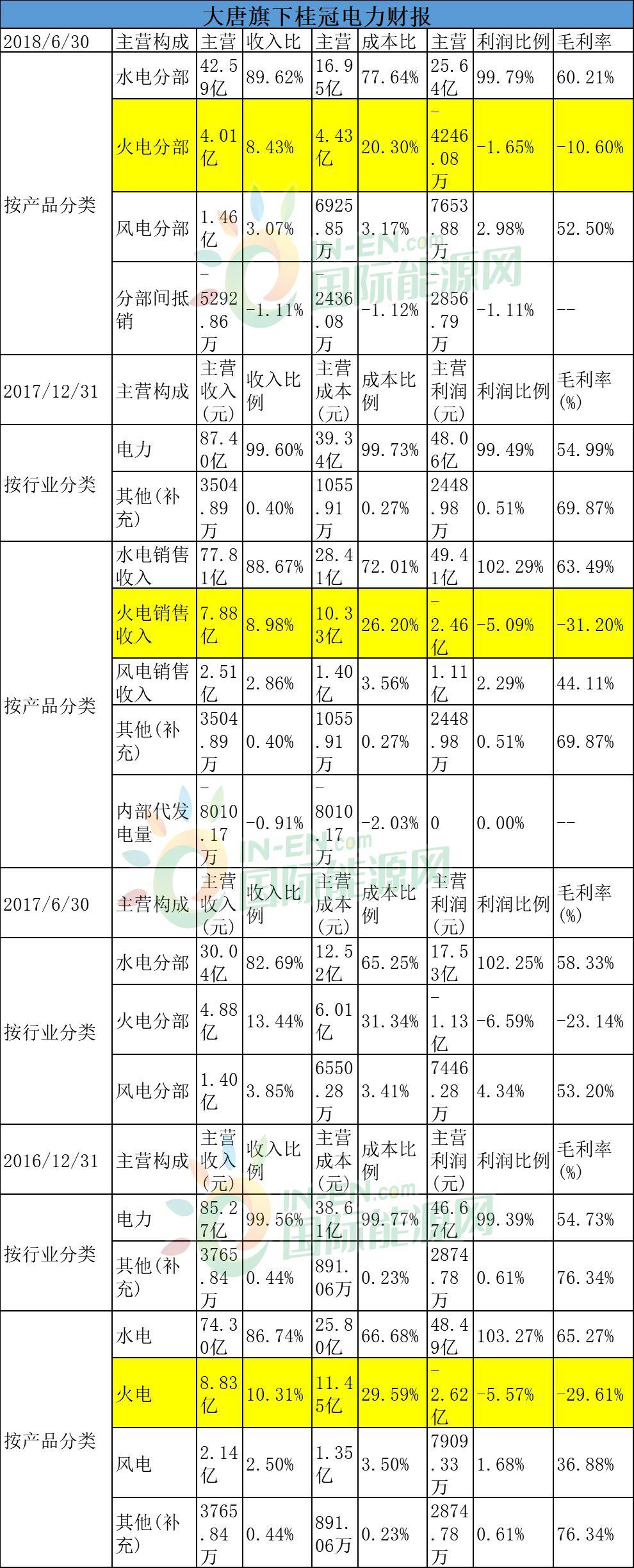 大唐集團(tuán)旗下的上市公司桂冠電力(600236)財(cái)報(bào)顯示,火電板塊一直都在拖業(yè)績(jī)的后腿。2016年火電利潤占比是-5.57%,2017年上半年,火電利潤占比是-6.59%,到2018年上半年,火電利潤占比依然是負(fù)數(shù)。