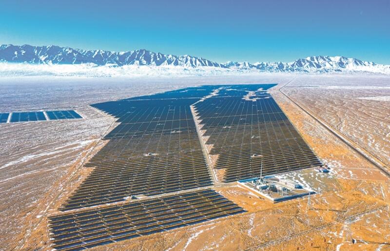 中國石油玉門油田200兆瓦光伏發(fā)電項目在戈壁之中現(xiàn)“藍海”。朱俊霖攝