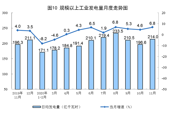 11月份,全國(guó)規(guī)模以上工業(yè)原煤、原油、天然氣生產(chǎn)保持平穩(wěn)增長(zhǎng),電力生產(chǎn)明顯加快。