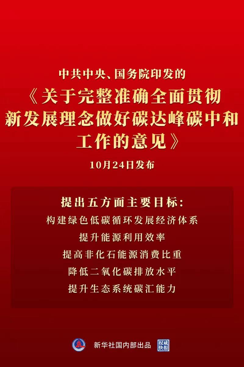 10月24日,中共中央 國(guó)務(wù)院正式發(fā)布《關(guān)于完整準(zhǔn)確全面貫徹新發(fā)展理念做好碳達(dá)峰碳中和工作的意見》,內(nèi)容極其豐富。文件強(qiáng)調(diào):