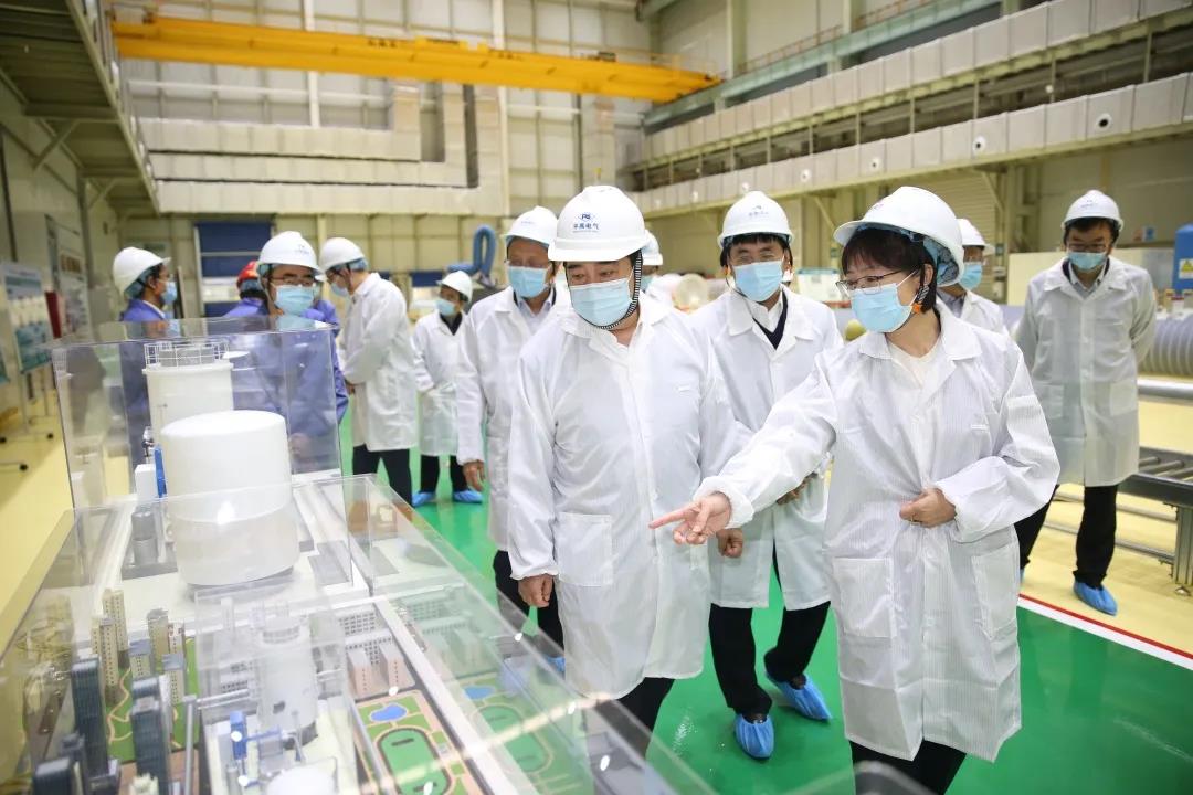 2021年10月26日,集團(tuán)公司黨委書記、董事長(zhǎng)白忠泉到平高集團(tuán)調(diào)研。圖為白忠泉在平高集團(tuán)新產(chǎn)品展區(qū)聽取相關(guān)工作匯報(bào)。