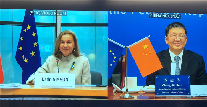 本網(wǎng)訊 3月31日,中國國家能源局局長章建華在北京通過視頻形式與歐盟能源委員西姆森共同主持召開第十次中歐能源對話。