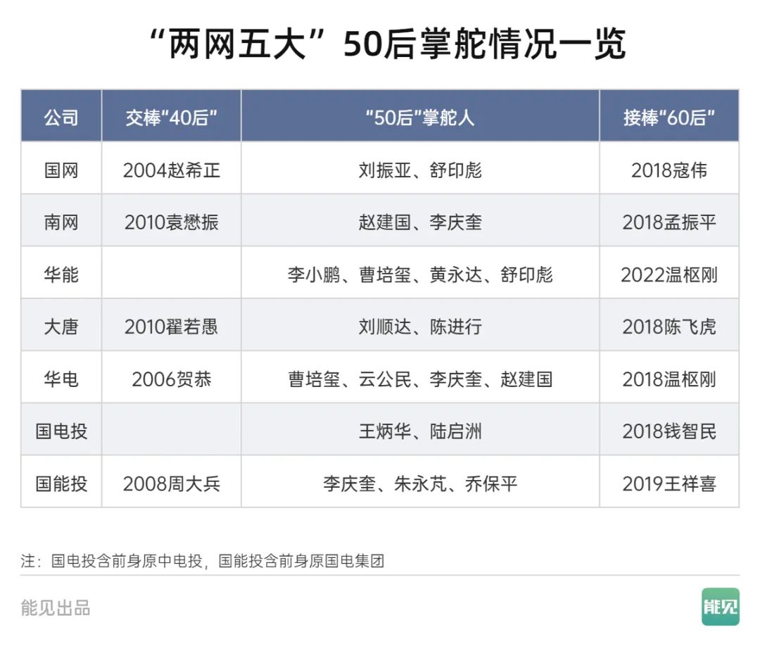 最后一位登場(chǎng)的是1958年7月出生的舒印彪。他于2016年5月接替劉振亞出任國(guó)家電網(wǎng)董事長(zhǎng)兼黨組書記,并于2018年11月交棒“60后”寇偉;又于2018年11月接替曹培璽出任華能集團(tuán)董事長(zhǎng)兼黨組書記,并于2022年9月交棒“60后”溫樞剛。舒印彪是14人中唯一一位院士,去年他的院士科研團(tuán)隊(duì)曾發(fā)布最新學(xué)術(shù)研究成果《我國(guó)電力碳達(dá)峰、碳中和路徑研究》。他也是跟“60后”并肩作戰(zhàn)時(shí)間最長(zhǎng)的一位,可謂最像“60后”的“50后”掌舵人:他率領(lǐng)華能拿下中國(guó)第四張核電牌照,從此改變中國(guó)核電行業(yè)牌照獲取邏輯;他憑借院士、政協(xié)委員、IEC主席三重身份,在更廣闊的輿論場(chǎng)積極扮演新能源領(lǐng)域意見領(lǐng)袖角色。(作者 粟靈)