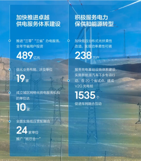 農(nóng)網(wǎng)鞏固提升工程投資1600億元,農(nóng)網(wǎng)電壓合格率99.831%,農(nóng)網(wǎng)供電可靠率99.915%;捐贈(zèng)幫扶項(xiàng)目預(yù)計(jì)年產(chǎn)值4765萬(wàn)元,帶動(dòng)群眾就近就業(yè)2100余人;投入無(wú)償幫扶資金1.1億元。
