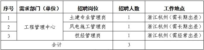 現(xiàn)根據(jù)工作需要面向國家電投系統(tǒng)內(nèi)招聘工程管理中心工作人員3名,有關(guān)事項公告如下: