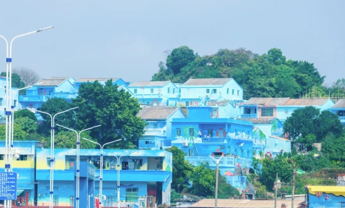 明朝期間,廣東省臺(tái)山市曾是“海上絲綢之路”的重要節(jié)點(diǎn)。中交四航局承建的臺(tái)山市海洋牧場(chǎng)廣海漁旅融合項(xiàng)目包括外立面修復(fù)、漁村升級(jí)等子工程,量身定制的海浪、椰樹(shù)等墻繪充分展現(xiàn)漁村的獨(dú)特風(fēng)貌,奠定了漁旅融合發(fā)展的底蘊(yùn),這片“藍(lán)色海洋”吸引眾多游客前來(lái)打卡,盡顯濱海旅游之美。