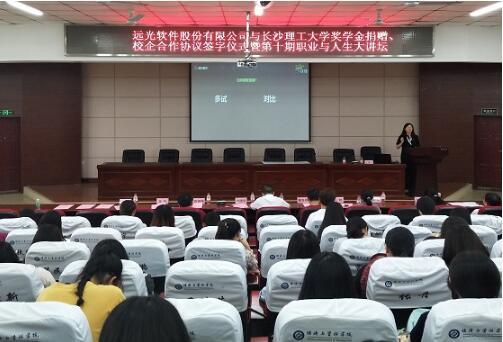深化校企合作,引進優(yōu)質(zhì)人才。5月29日,遠光軟件與長沙理工大學(xué)獎學(xué)金捐贈、校企合作協(xié)議簽字儀式暨第十期職業(yè)與人生大講壇成功舉辦。雙方簽署了校企合作協(xié)議及捐贈協(xié)議,遠光軟件向長沙理工大學(xué)教育基金會捐贈設(shè)立“遠光軟件獎學(xué)金”,建立全方位校企合作,共同培育高素質(zhì)應(yīng)用型人才,為實現(xiàn)企業(yè)技術(shù)創(chuàng)新與優(yōu)質(zhì)人才引進做出新的貢獻。