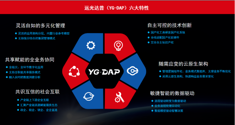 遠(yuǎn)光DAP是遠(yuǎn)光軟件以“助力企業(yè)數(shù)字化轉(zhuǎn)型升級(jí)”為目標(biāo)研發(fā)推出的新一代企業(yè)數(shù)字核心應(yīng)用系統(tǒng),采用“云原生”技術(shù),按照“全棧國產(chǎn)化、組件式接入、全業(yè)務(wù)協(xié)同、嵌入型分析、服務(wù)化運(yùn)營”的設(shè)計(jì)理念,建設(shè)“戰(zhàn)略規(guī)劃、資源管理、生產(chǎn)經(jīng)營、共享服務(wù)、數(shù)據(jù)運(yùn)營”五大核心應(yīng)用,以數(shù)據(jù)驅(qū)動(dòng)業(yè)務(wù)管理,以智能支撐戰(zhàn)略決策,促進(jìn)產(chǎn)業(yè)互聯(lián)、社會(huì)互聯(lián)生態(tài)構(gòu)建。
