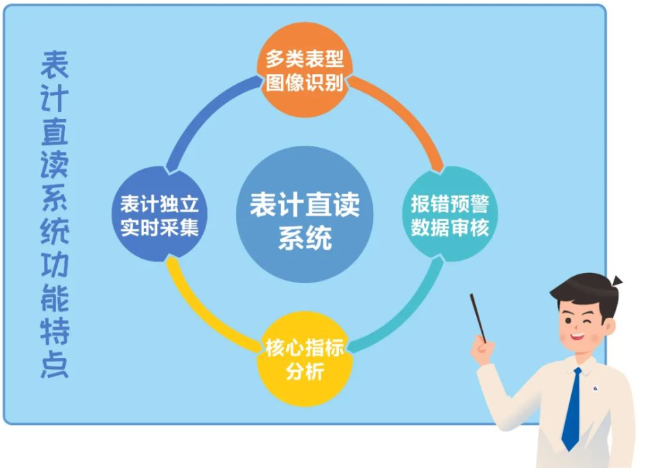 表計綜合管理系統(tǒng)通過外置的高清圖像采集終端,對電廠里的電表、氣表、熱表及水表等計量儀表進(jìn)行高清圖像采集,并進(jìn)行表盤圖模智能識別,將采集的高清圖像進(jìn)行數(shù)據(jù)格式轉(zhuǎn)換,統(tǒng)一接口輸出,自動生成表計數(shù)據(jù)并管理,支持?jǐn)?shù)據(jù)溯源和人工核對,支持終端自動校時,各表讀數(shù)時間點(diǎn)、頻率等可依據(jù)實(shí)際需求自定義設(shè)置。