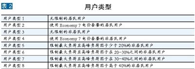 ELEXON根據(jù)負荷特性將所有用戶分為8種類型,涵蓋居民用戶和非居民用戶。其中,居民用戶包括無限制的居民用戶,和使用Economy 7電價套餐(差別性電價套餐,使用基荷機組夜間提供的更便宜電力)的居民用戶;非居民用戶類型較為復雜,包括無限制的非居民用戶、使用Economy 7電價套餐的非居民用戶和限制了最大負荷的非居民用戶,后者根據(jù)高峰負荷因子(在某一時間段內(nèi)某用戶的平均負荷與該用戶最大負荷的百分比)水平又細分為4種類型,各類用戶的負荷特性均存在較大區(qū)別。