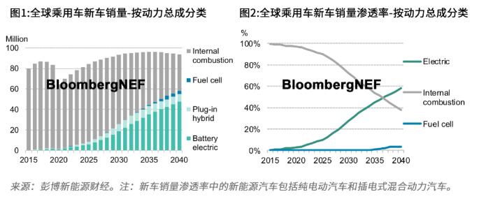 彭博新能源財經(jīng)最新發(fā)布的《新能源汽車市場長期展望》報告指出,到2040年,新能源汽車在全球乘用車銷量的占比預(yù)計達(dá)58%,在乘用車保有量的占比達(dá)31%。除乘用車外,新能源車在公交車保有量的占比將達(dá)67%,在兩輪摩托車占比達(dá)47%,在輕型專用車占比達(dá)24%。