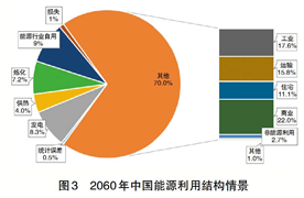 決定碳排放的第二個(gè)因素是能源清潔水平,而能源清潔水平是由非化石能源發(fā)展決定的。非化石能源(水、核、風(fēng)、光等)主要以電能形式被利用,到2060年將作為主要的能源品種用于社會(huì)生產(chǎn)生活,預(yù)計(jì)將占能源消費(fèi)總量的80%以上(見圖4),客觀上決定了未來以清潔電力為中心的高電氣化能源利用格局,同時(shí)也表明電力系統(tǒng)深度脫碳對(duì)碳中和目標(biāo)的重要作用。而非完全電氣化部門,例如少數(shù)工業(yè)過程(采礦、鋼鐵、水泥、化工等部分生產(chǎn)環(huán)節(jié))、交通部門(長距離貨運(yùn)、遠(yuǎn)洋航運(yùn)和航空等),盡管生產(chǎn)能耗顯著降低,但部分生產(chǎn)環(huán)節(jié)仍需一定量的化石能源,難以實(shí)現(xiàn)完全脫碳,意味著仍會(huì)有一定數(shù)量的與能源相關(guān)的二氧化碳排放。這部分二氧化碳需要由碳匯來中和。碳匯主要包括自然碳匯(自然生態(tài)系統(tǒng)固碳)和技術(shù)碳匯(碳捕獲與儲(chǔ)存技術(shù),CCS)。2016年我國森林碳匯達(dá)到每年5-6億噸水平;有研究顯示,2010-2016年中國陸地生態(tài)系統(tǒng)碳匯年均11.1±3.8億噸,未來自然碳匯會(huì)小幅增加但很難實(shí)現(xiàn)翻倍增長。預(yù)計(jì)2060年我國能源相關(guān)碳排放降至14億噸,若加上非能源類碳排放,無法完全依靠自然碳匯實(shí)現(xiàn)碳中和,還需發(fā)展技術(shù)碳匯。