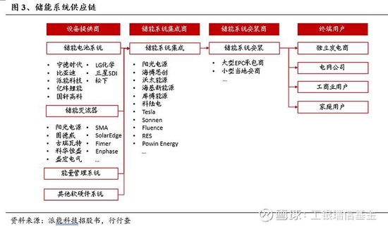 儲(chǔ)能產(chǎn)業(yè)鏈在電力體系中十分重要,諸多環(huán)節(jié)之間存在交集。儲(chǔ)能產(chǎn)業(yè)鏈上游主要包括電池原材料及生產(chǎn)設(shè)備供應(yīng)商等;中游主要為電池、電池管理系統(tǒng)、能量管理系統(tǒng)以及儲(chǔ)能變流器供應(yīng)商;下游主要為儲(chǔ)能系統(tǒng)集成商、安裝商以及終端用戶等。產(chǎn)業(yè)鏈涉及的環(huán)節(jié)眾多,從電池制造到EPC施工,再到各種場景下運(yùn)營,電池制造環(huán)節(jié)與動(dòng)力電池企業(yè)存在交集,EPC施工環(huán)節(jié)與光伏、風(fēng)電施工企業(yè)存在交集,運(yùn)營商和電網(wǎng)企業(yè)存在交集。