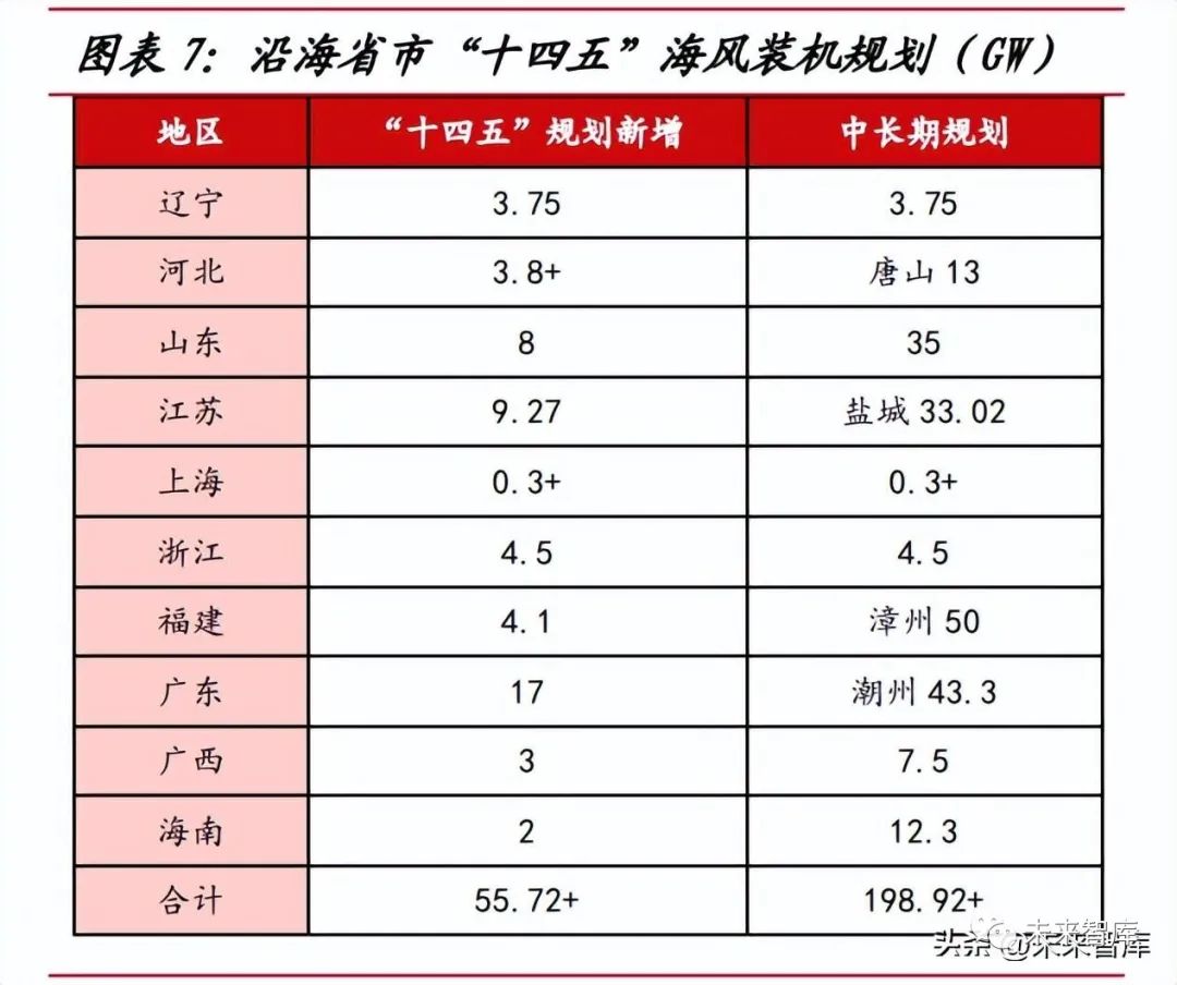 “十四五”規(guī)劃充沛,中長期發(fā)展可期。截至 2022 年,我國沿海省市已發(fā) 布“十四五”海上風(fēng)電發(fā)展規(guī)劃,整體規(guī)劃新增裝機(jī)規(guī)模有望突破 55GW,2021- 22 年我國海風(fēng)新增裝機(jī)約 21GW,對(duì)應(yīng) 2023-25 年裝機(jī)規(guī)模約 34GW??紤]到部 分地區(qū)相關(guān)海風(fēng)項(xiàng)目已實(shí)現(xiàn)平價(jià)上網(wǎng),海風(fēng)降本超預(yù)期,再結(jié)合廣東、山東、浙江 等地區(qū)已出臺(tái)地補(bǔ)政策支持海風(fēng)建設(shè),我們預(yù)計(jì)海風(fēng)需求以及新增裝機(jī)或超過沿海 地區(qū)規(guī)劃規(guī)模,中性假設(shè)條件下,2023-25 年我國海風(fēng)新增裝機(jī)規(guī)模有望超 40GW, 2023 年在行業(yè)充沛的招標(biāo)量下,新增裝機(jī)規(guī)模有望達(dá) 10GW,同比實(shí)現(xiàn)翻倍增長。根據(jù)風(fēng)芒能源統(tǒng)計(jì),我國已出臺(tái)的海上風(fēng)電規(guī)劃體量接近 200GW,中長期發(fā)展空 間廣闊。