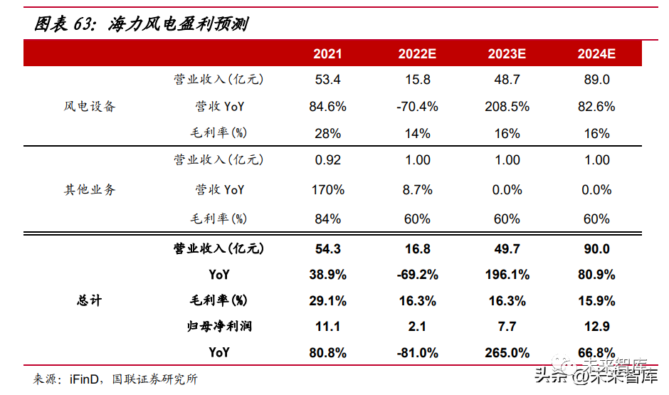 鑄造產(chǎn)能擴(kuò)張帶動(dòng)出貨量增長,盈利能力受益原材料價(jià)跌。預(yù)計(jì)公司 2022- 24 年有效鑄造產(chǎn)能預(yù)計(jì)共 2/7/15 萬噸,預(yù)計(jì) 2022-24 年公司鑄造主軸出貨 1.6/4.5/8.0 萬噸,對(duì)應(yīng)收入 1.6/5.1/9.2 億元,預(yù)計(jì)其他鑄件于 2023 年較大規(guī)模出 貨,2023-24 年出貨量分別為 3/7 萬噸。受益于海內(nèi)外風(fēng)電裝機(jī)需求提升,預(yù)計(jì)公 司 2022-24 年鍛造主軸出貨 14/17/20 萬噸,未來裝機(jī)需求提升將提升公司議價(jià)能 力,預(yù)計(jì) 2022-24 年風(fēng)電業(yè)務(wù)毛利率為 32%/34%/36%。我們預(yù)計(jì) 2022-24 年歸母凈利潤分別為 3.81/6.58/9.62 億元,同比23.31%/72.75%/46.36%;EPS 分別為 1.45/2.51/3.68 元/股。