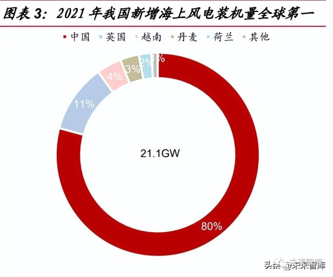 根據(jù) GWEC(全球風(fēng)能協(xié)會(huì))披露,2021 年我國新增風(fēng)電裝機(jī)容量為 47.6GW, 占全球總風(fēng)電新增裝機(jī)容量的 51%。海上風(fēng)電方面,海上風(fēng)電新增裝機(jī)量與累計(jì)裝 機(jī)量均位列全球第一。