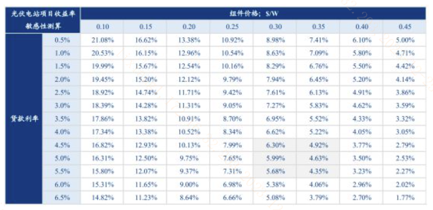 圖:光伏電站項(xiàng)目收益率敏感性測算表 (信息來源:華創(chuàng)證券)