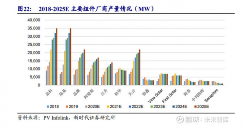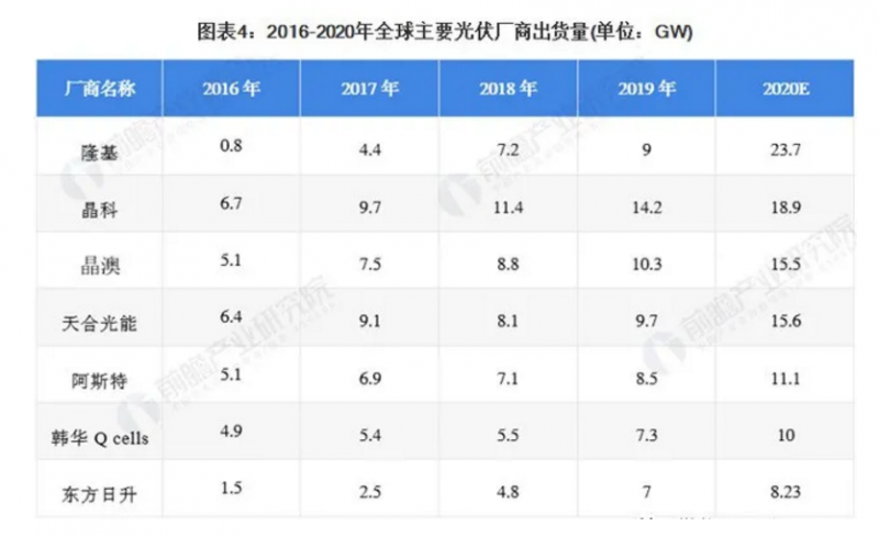 圖表2:我國(guó)光伏組件發(fā)展階段2016-2020年,全球主要廠商的組件出貨量不斷提升。2020年,隆基股份組件出貨量約為23.7GW,同比2019年增長(zhǎng)163.33%,躍升至行業(yè)首位。同時(shí),晶科、晶澳等龍頭組件廠商的出貨量也實(shí)現(xiàn)了超過(guò)30%的增長(zhǎng)。廠商擴(kuò)張產(chǎn)能主要為滿(mǎn)足下游光伏裝機(jī)容量的增加。