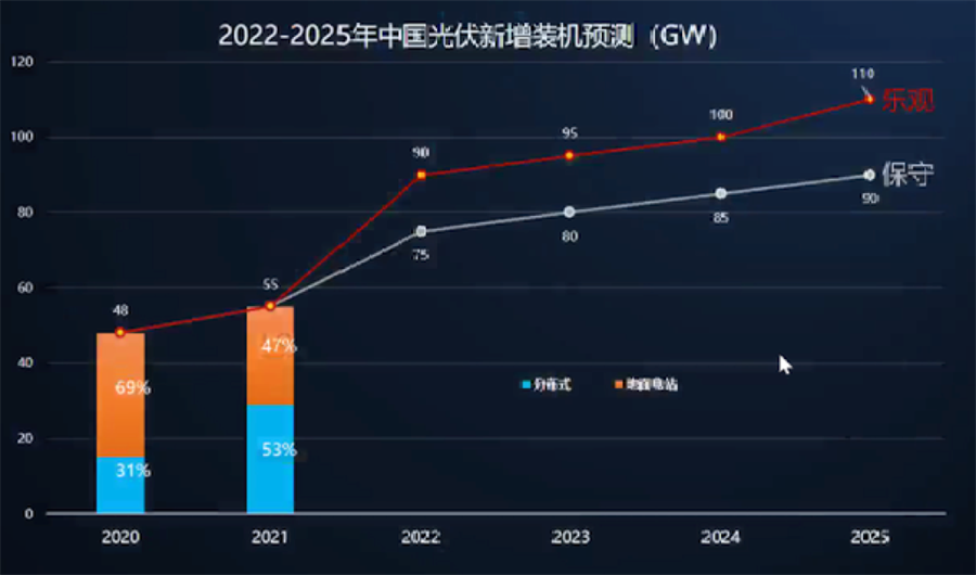 根據(jù)中國(guó)光伏行業(yè)協(xié)會(huì)(CPIA)則預(yù)估,2022-2025年,我國(guó)年均新增光伏裝機(jī)將達(dá)到83-100GW,系全球光伏第一大裝機(jī)國(guó)。