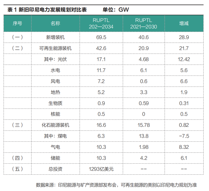 印尼清潔能源轉(zhuǎn)型受挫但目標(biāo)未變。2025年5月,印尼國家電力公司(PLN)正式發(fā)布了印尼電力發(fā)展規(guī)劃2025—2034(以下簡稱為《RUPTL2025—2034》)。從這版規(guī)劃中可以看出,印尼政府的清潔能源轉(zhuǎn)型目標(biāo)并未改變,可再生能源裝機仍然會得到大力發(fā)展。燃煤發(fā)電機組大幅減少,氣電機組增加。對比十年規(guī)劃,可以看出印尼政府仍然會加大可再生能源裝機的投資規(guī)模。2025年至2034年期間,印尼投資建設(shè)的光伏、風(fēng)電裝機將大幅增加,煤電裝機將大幅減少。另外,印尼新版規(guī)劃中,約70%的投資額(949億美元)分配給了獨立發(fā)電商,其中新能源投資額為813億美元。印尼政府對未來經(jīng)濟(jì)增長的樂觀支持著電力裝機的增長。據(jù)稱,印尼如此大規(guī)模的電力發(fā)展計劃是為了支撐實現(xiàn)印尼2025—2029年間,年均增速8%的經(jīng)濟(jì)增長目標(biāo)。