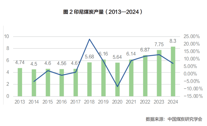 就石油、天然氣和煤炭化石能源稟賦而言,印尼油氣算不上富足,但煤炭資源豐富。印尼曾經(jīng)為OPEC成員國,但在2003年成為石油凈進(jìn)口國,并于2008年退出該組織。雖然印尼天然氣儲量排名東盟各國前列,但預(yù)計在2030年會變成天然氣凈進(jìn)口國。印尼煤炭儲量豐富,世界排名第六,儲采比為62。印尼是排名世界前列的煤炭生產(chǎn)和出口大國。根據(jù)印尼能源和礦產(chǎn)部相關(guān)數(shù)據(jù)統(tǒng)計,2024年全年印尼煤炭產(chǎn)量已經(jīng)達(dá)到8.3億噸、出口4.3億噸。