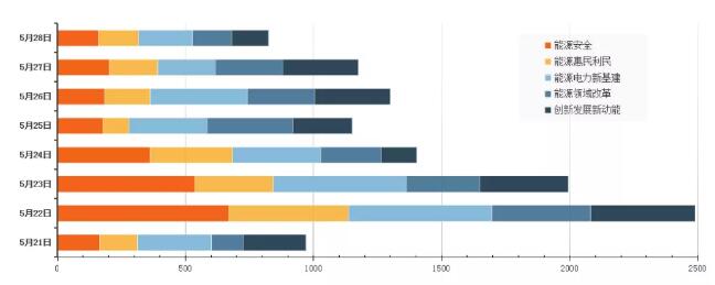 根據(jù)中電傳媒能源情報(bào)研究中心輿情監(jiān)測室監(jiān)測,能源安全、能源惠民利民、能源電力新基建、能源領(lǐng)域改革、創(chuàng)新發(fā)展新動能等輿論熱度較高。能源安全的輿情監(jiān)測結(jié)果中,包含了能源供應(yīng)、石油天然氣儲備等相關(guān)報(bào)道;能源惠民利民的輿情監(jiān)測結(jié)果中,包含了降低用能成本、降低工商業(yè)電價(jià)5%政策延長到今年年底、農(nóng)村電網(wǎng)建設(shè)、清潔取暖等相關(guān)報(bào)道;能源電力新基建的輿情監(jiān)測結(jié)果中,包含了能源電力新基建、充電樁、能源互聯(lián)網(wǎng)等相關(guān)報(bào)道;能源領(lǐng)域改革的輿情監(jiān)測結(jié)果中,包含了電力體制改革、油氣體制改革、國資國企改革等相關(guān)報(bào)道;創(chuàng)新發(fā)展新動能的輿情監(jiān)測結(jié)果中,包括了氫能、儲能、能源技術(shù)裝備創(chuàng)新以及智慧能源等相關(guān)報(bào)道。