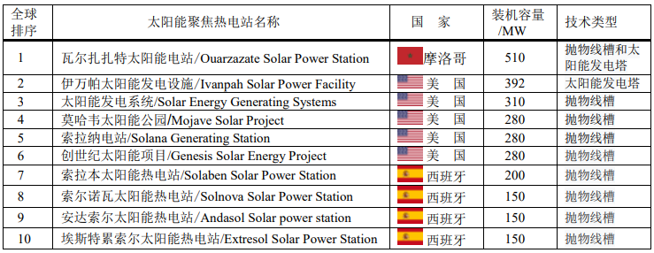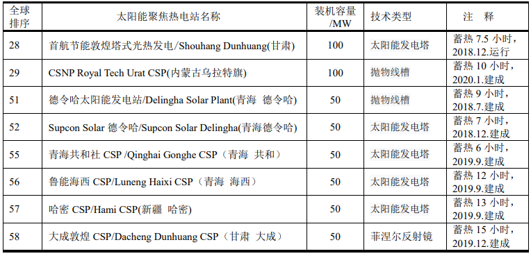 另外,中國(guó)還有五座太陽能聚焦熱電站已立項(xiàng)但尚未實(shí)施。