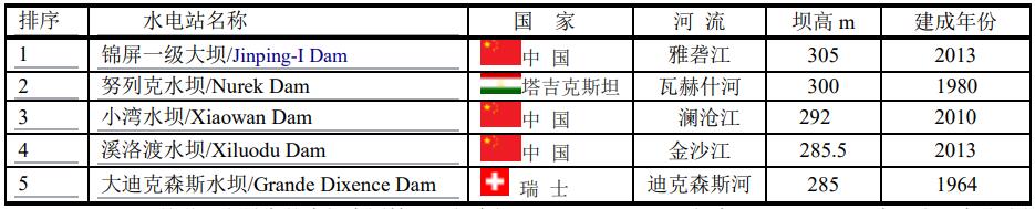 2021年全球最高的大壩