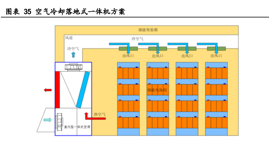 風(fēng)冷溫控系統(tǒng)一般由儲(chǔ)能溫控廠商直接提供整體系統(tǒng)產(chǎn)品,其中核心部件包括壓縮 機(jī)、風(fēng)機(jī)、換熱器等。風(fēng)冷具備方案成熟、成本低、結(jié)構(gòu)簡(jiǎn)單等優(yōu)點(diǎn),但同時(shí)由于空氣 的比熱容低,導(dǎo)熱系數(shù)低,風(fēng)冷一般應(yīng)用于功率較低場(chǎng)景。